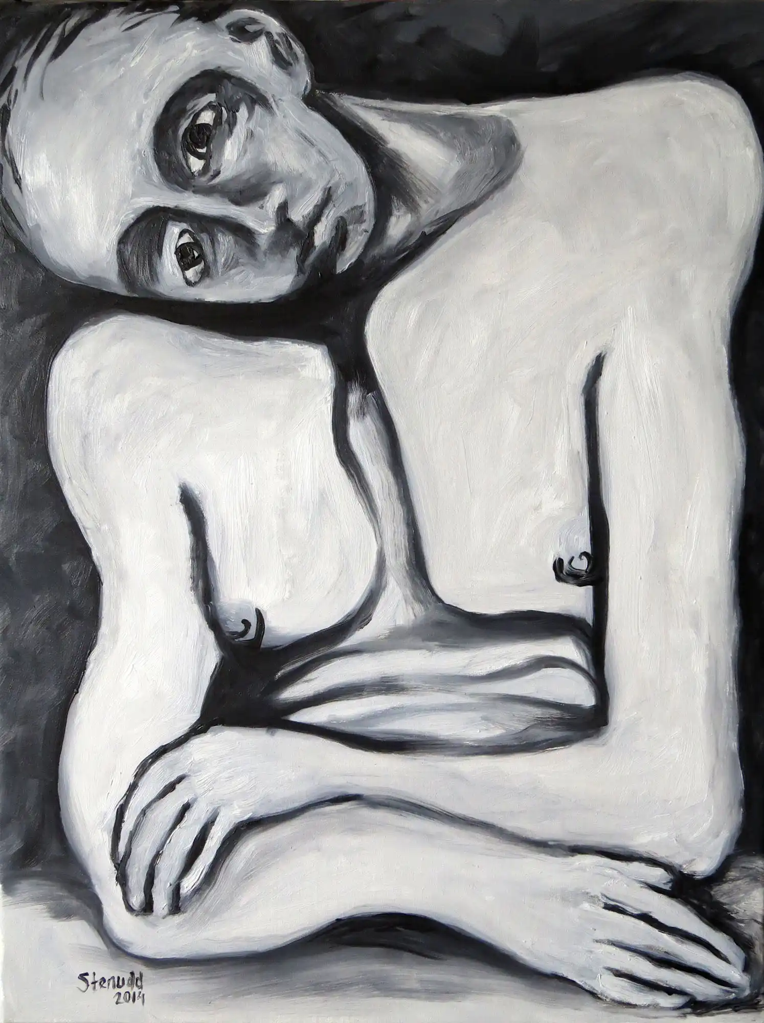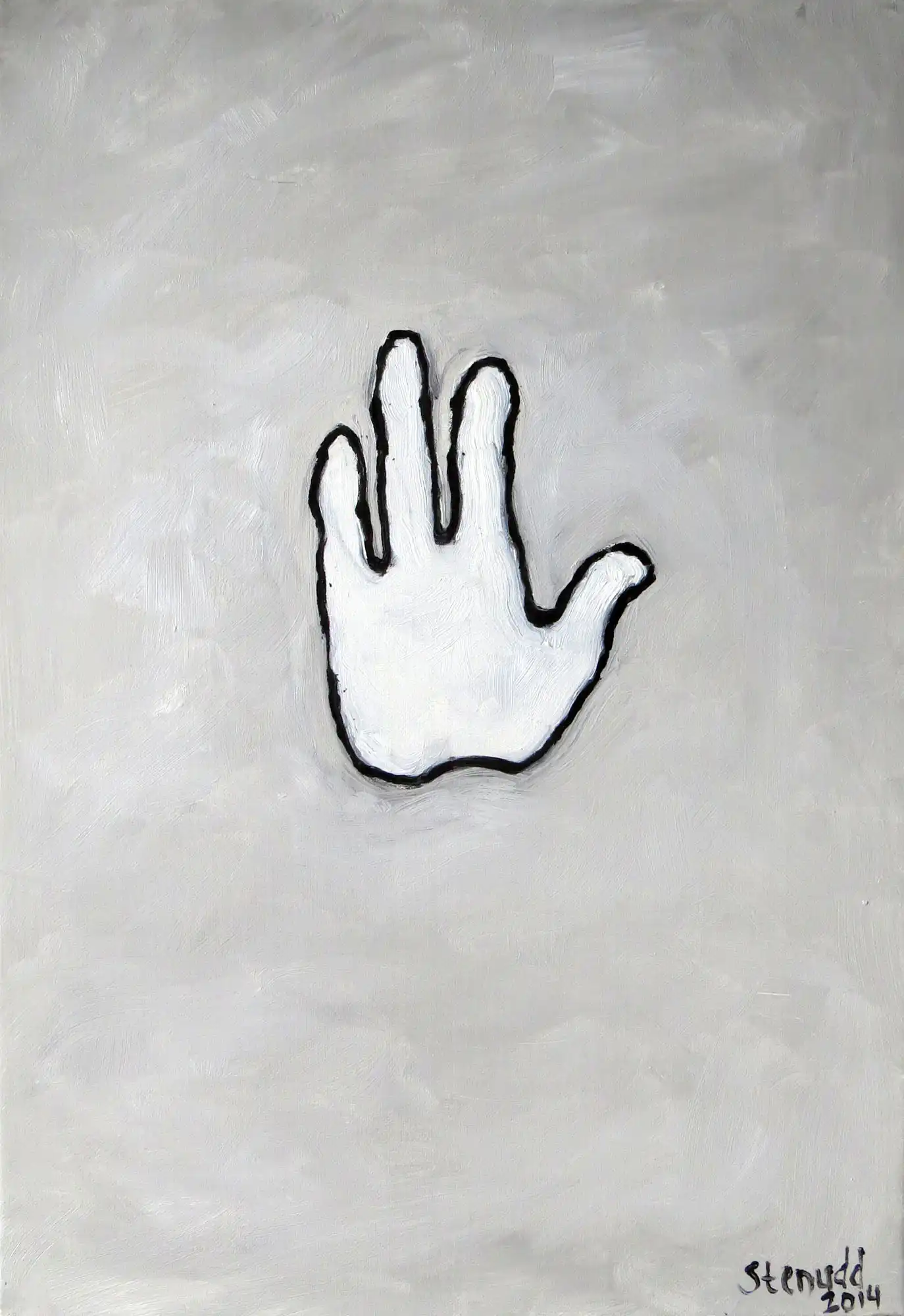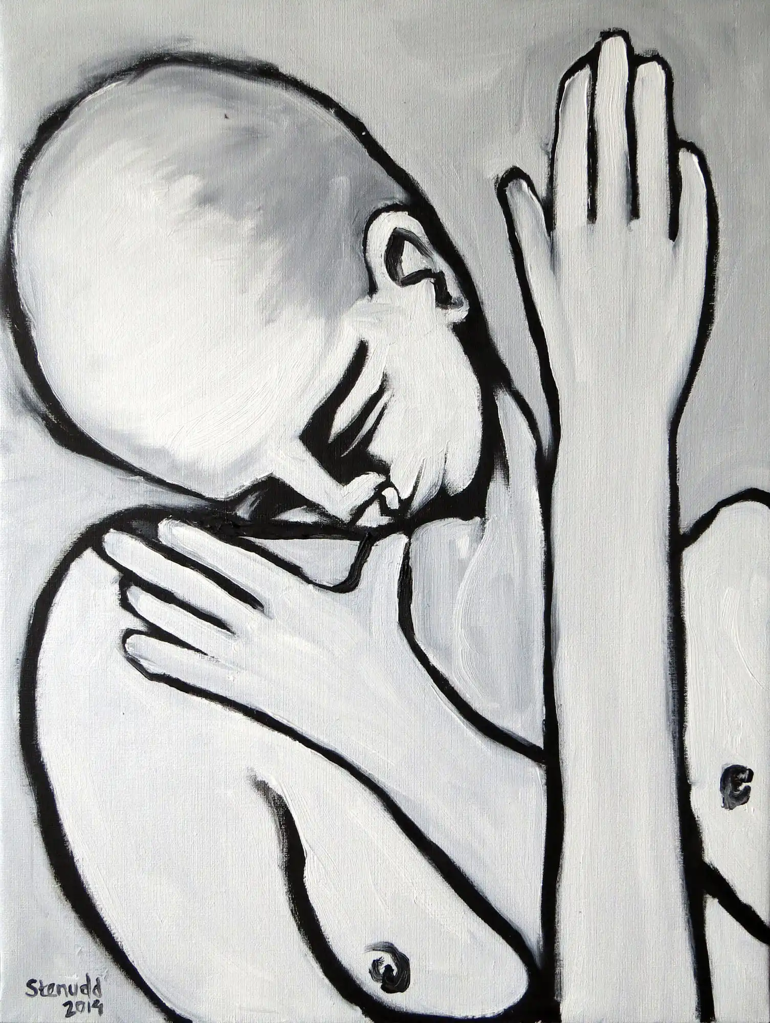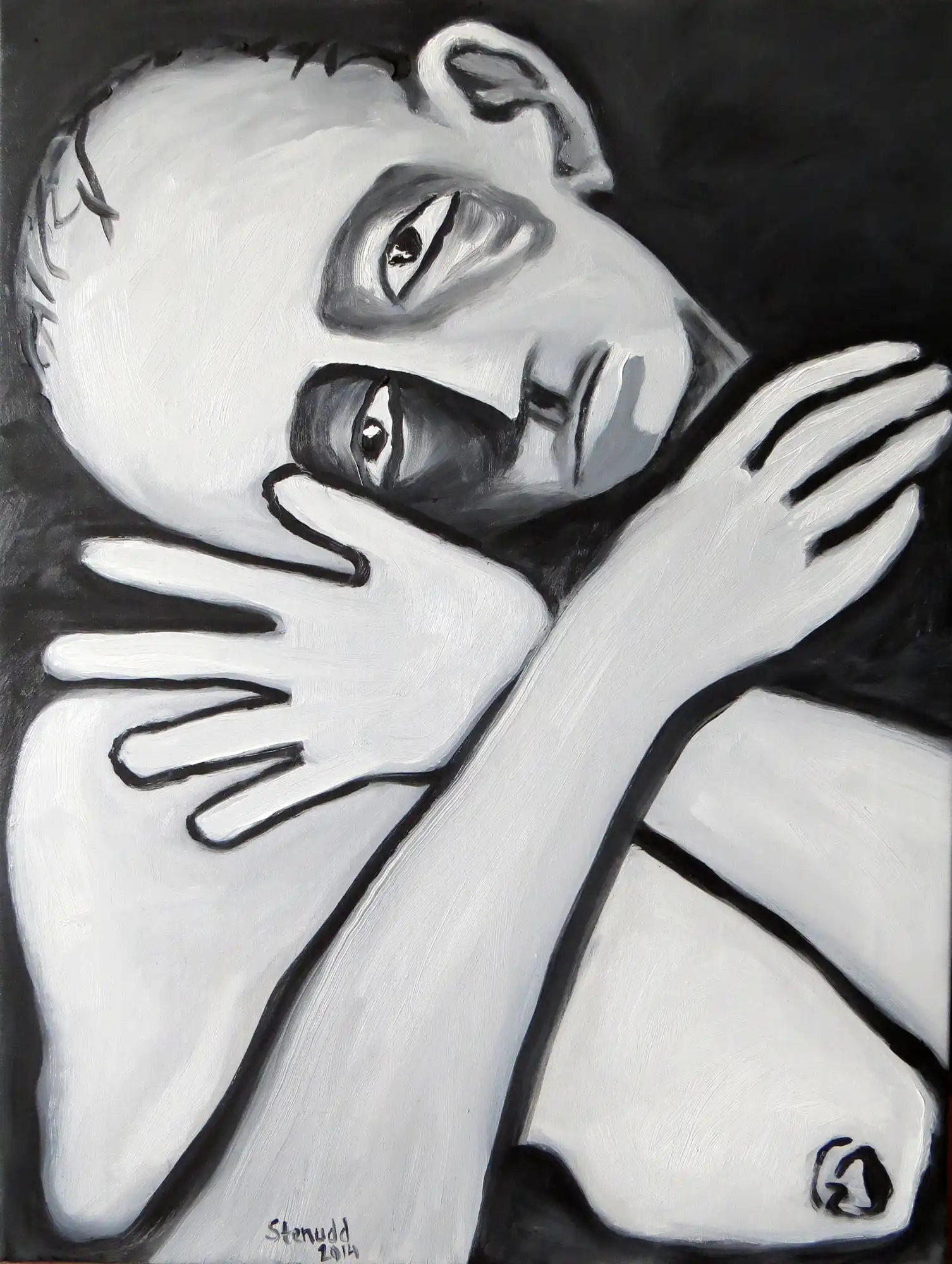 Hands On![]() 2014 Oil Paintings by Stefan StenuddSuddenly I Paint AgainIn July 2014 I picked up the brush and got started, inspired by a local Picasso exhibition, and I got at it with a frenzy. More than one painting per day. We will see how long I keep it up, but so far it's a pure joy. I experiment with black and white well, one black and two different whites. I keep it close to drawing, just to see what happens. It's also kind of a warm up. Colors will come, surely. I call these paintings Hands On, for obvious reasons. On an impulse, I traced my own hand on the canvas, and one idea was followed by another. I've already deviated a bit from this theme, as you can see further down this webpage. The hands remain, but they are not alone.