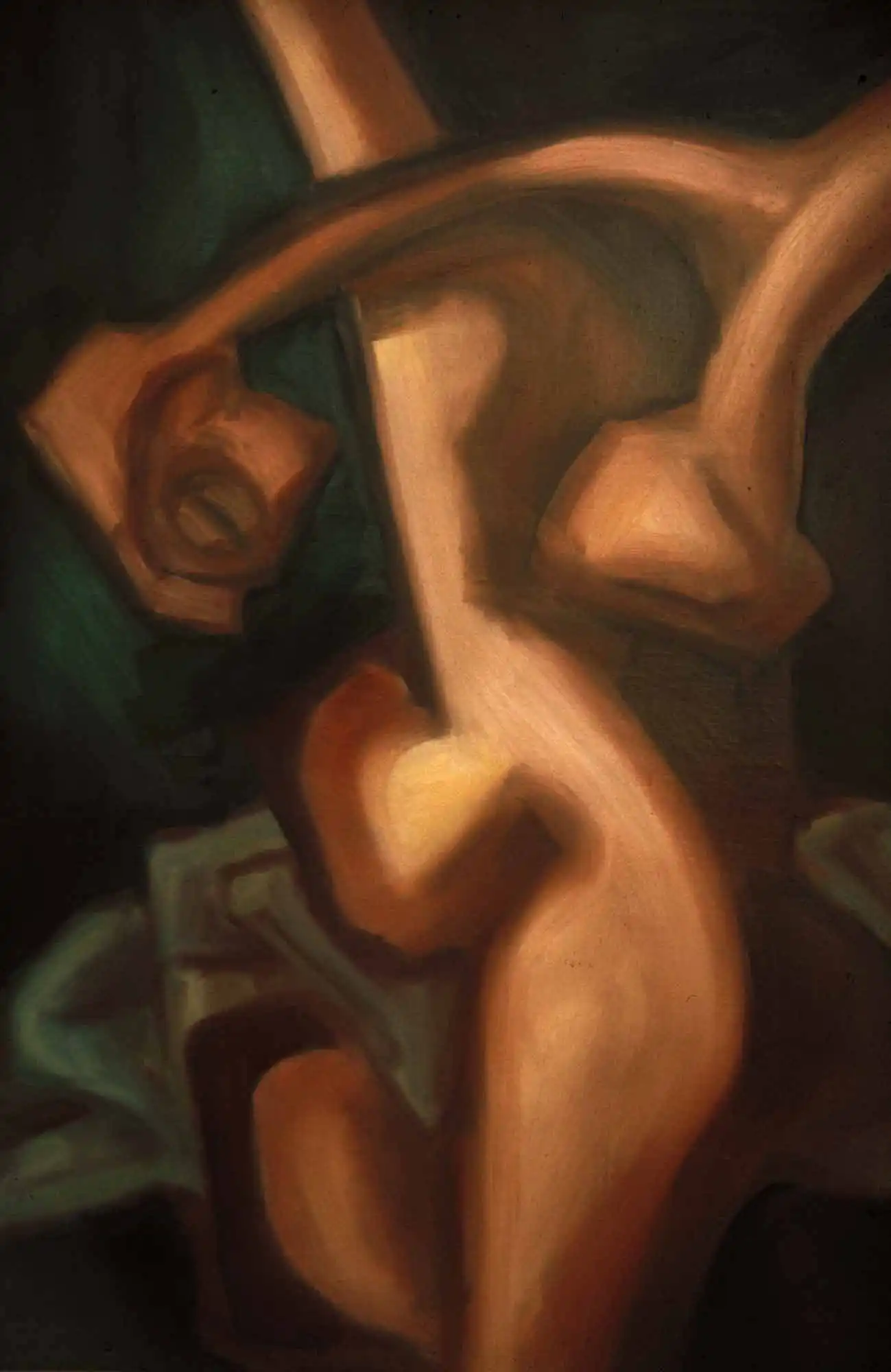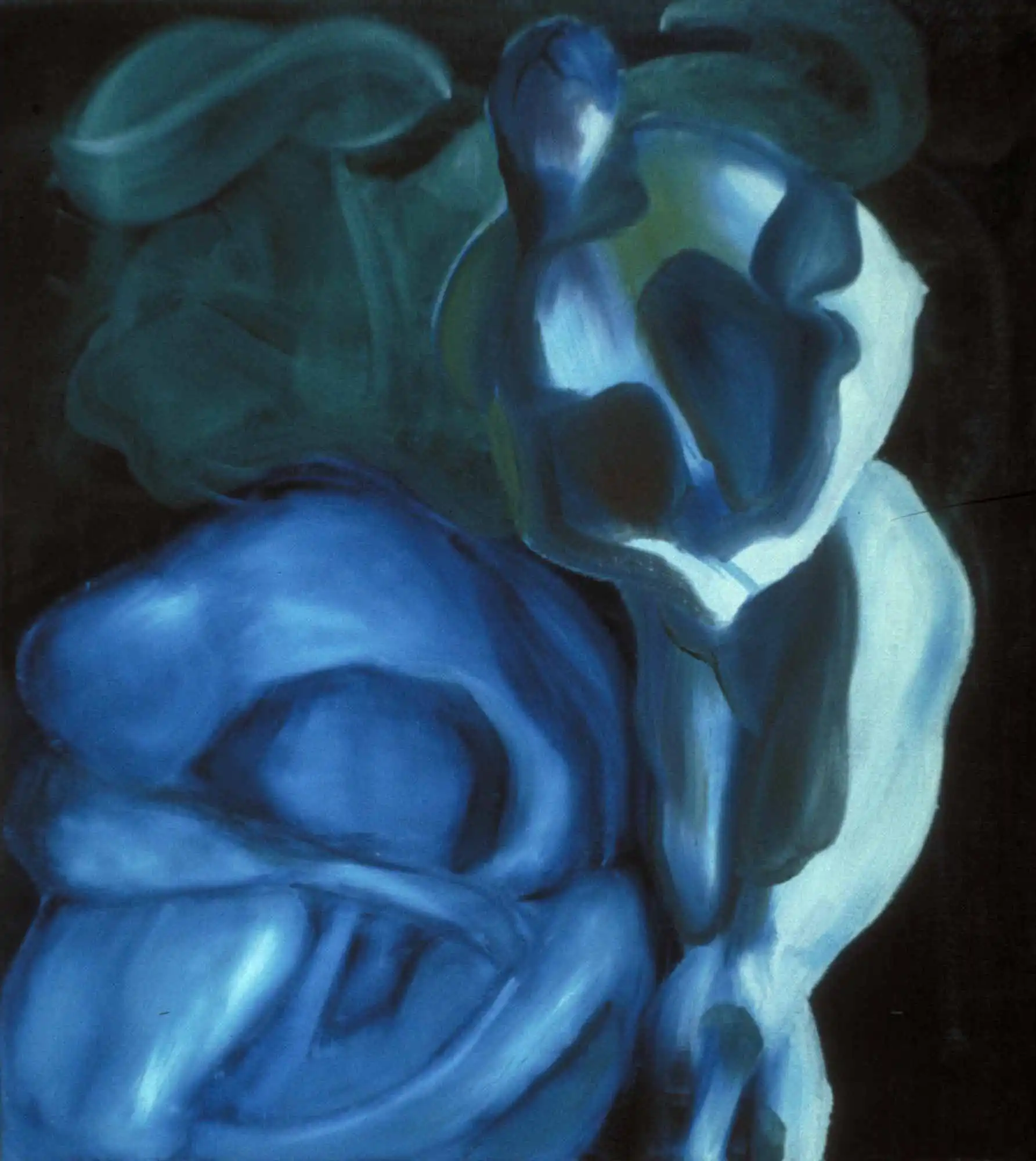 This would be a global kind of lovemaking, where the uniting of the two lovers is sort of turning them into one body, one flesh, and alas their heads weigh ever so lightly in comparison with what their hips have engaged in. The meeting of these colors also involved me for a few more paintings.