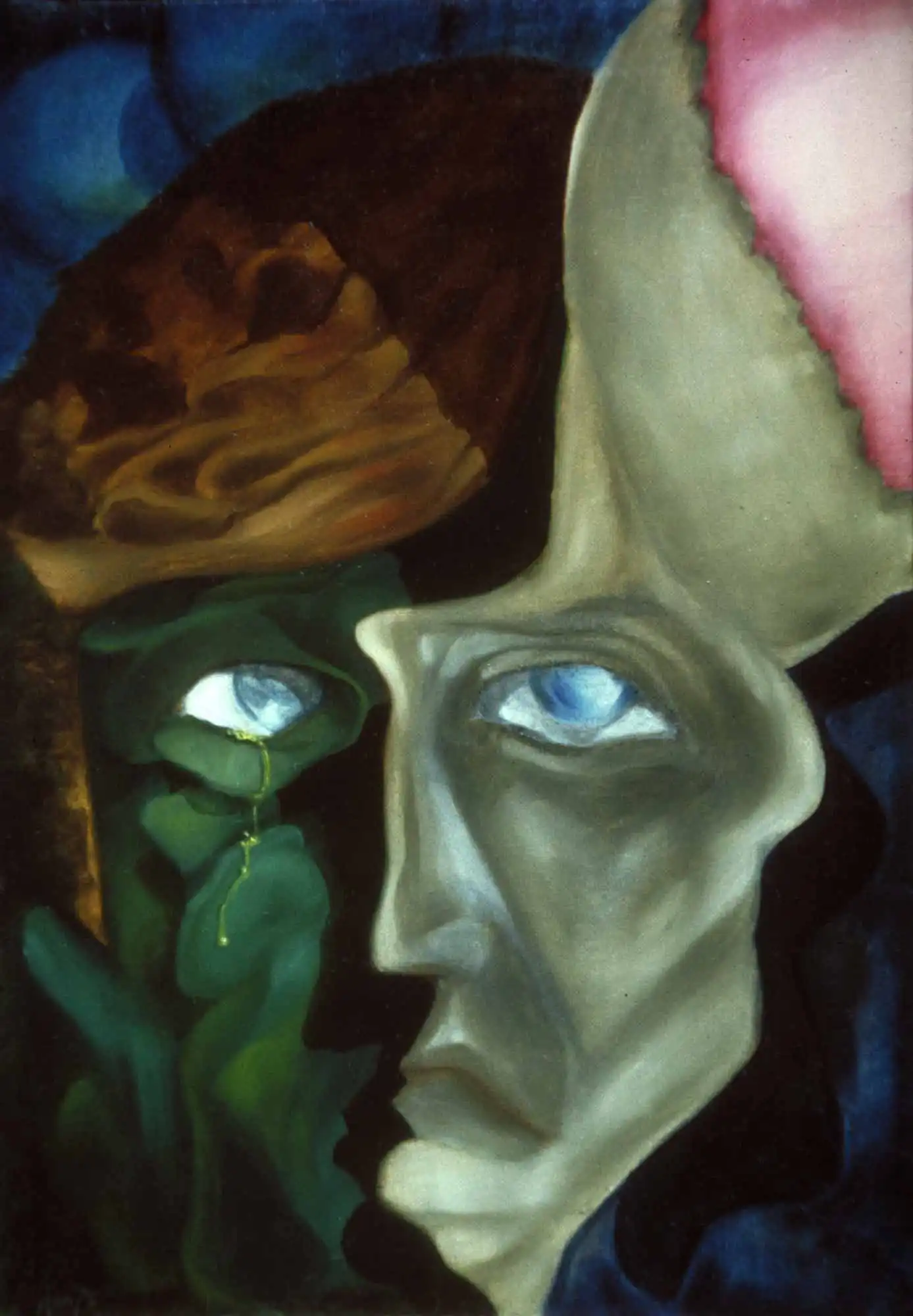 Here the dynamics between the two halves of the face are quite clear. Just as clearly visible is that one half is in the foreground, and the other is sort of luring behind. Surely, they can shift their positions from time to time, but rarely do I see a face where they are equals and never upon scrutiny. This painting, by the way, was stolen that same year shortly after completion. There was a burglary in the studio I shared with brilliant artist Mikael Eriksson. They took this painting of mine, and his stereo. That's how I remember it, but he might recollect differently. Beauty is in the eyes of the prowler.